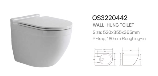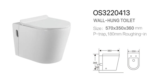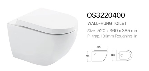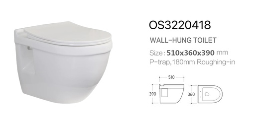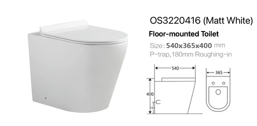 كرسي ارضي تصريف جداري OS3220416 صيني ORIENT STANDARD ابيض مطفي 54*36*40 سم دائري 18 سم UF