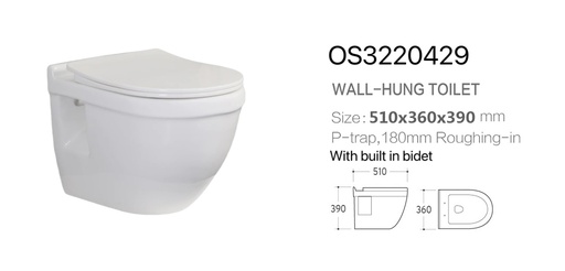 كرسي معلق OS3220429 صيني ORIENT STANDARD ابيض 52*35*.36.5 سم دائري 18-23 سم UF مع شطاف
