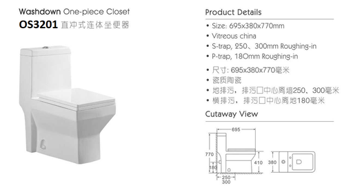 كرسي افرنجي OS3200 صيني ORIENT STANDARD ابيض 25 سم UF